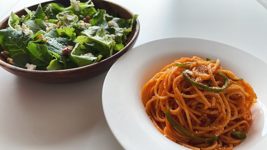 ベビーリーフとレタスミックスを合わせてサラダにしました