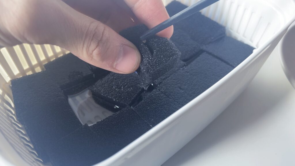 ③ダスターを入れる(根に液肥を均等に供給する役割)
