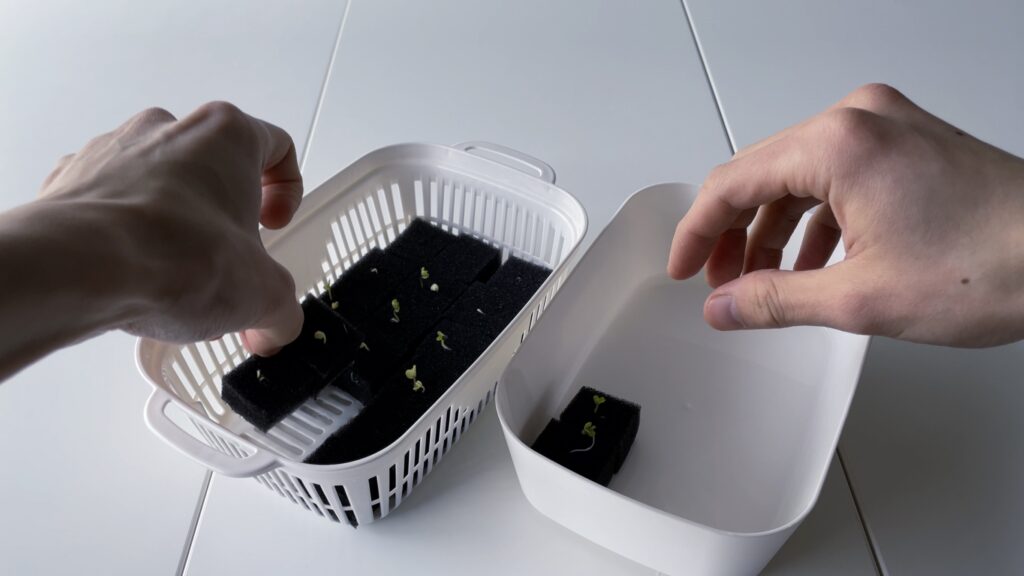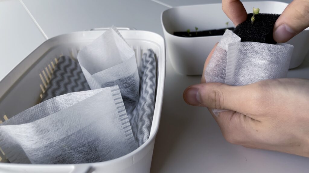 ・栽培容器(DAISOで購入 豆苗プランター(JAN4965534107129)