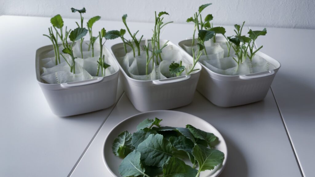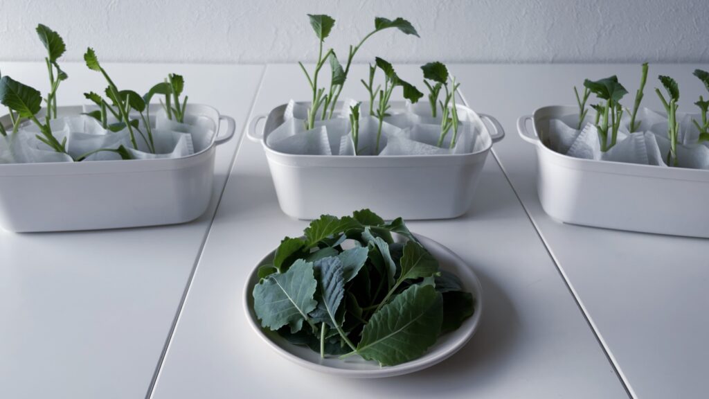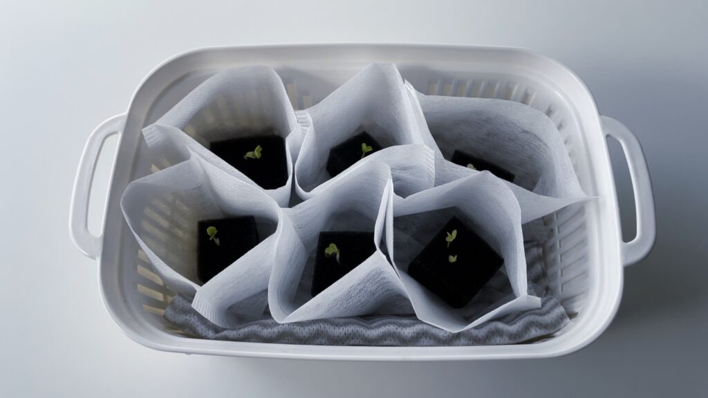 ⑦ケールは好光性種子なので明るい場所に置いて発芽を待ちます