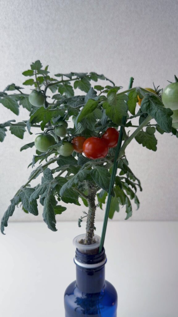 今回は育てたミニトマトは「レジナ」と言う品種で草丈が15〜20cmくらいの矮小ミニトマトです。草丈が低いので支柱を必要とせず室内でも手軽に栽培出来ます。